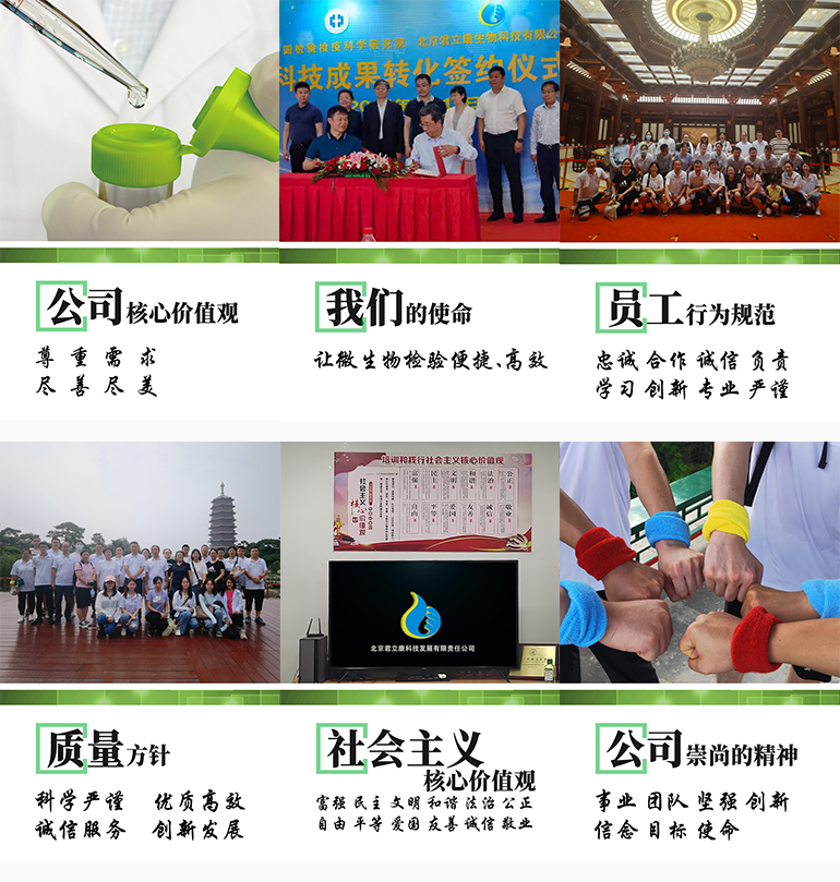 北京君立康科技發(fā)展有限責(zé)任公司成立于2004年,是一家研發(fā)、生產(chǎn)、銷(xiāo)售微生物檢測(cè)產(chǎn)品的國(guó)家高新技術(shù)企業(yè),主要服務(wù)食品安全、環(huán)境衛(wèi)生、化妝品、藥品、臨床檢驗(yàn)、檢驗(yàn)檢疫機(jī)構(gòu)等領(lǐng)域,為微生物檢測(cè)用戶(hù)提供優(yōu)質(zhì)的產(chǎn)品和服務(wù)。